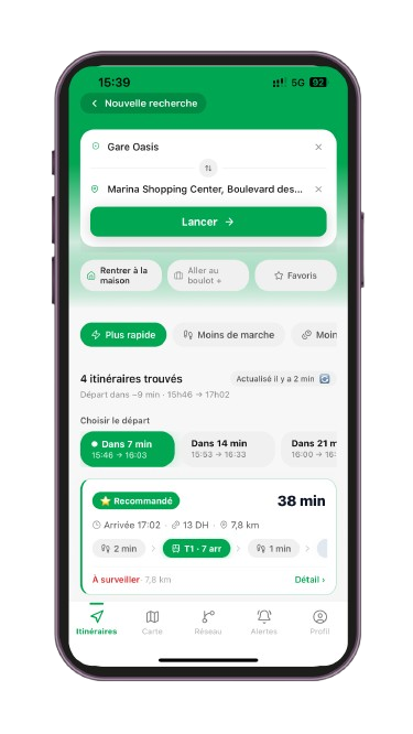 Entrez une adresse, un lieu ou un arrêt pour lancer une recherche adaptée à Casablanca.